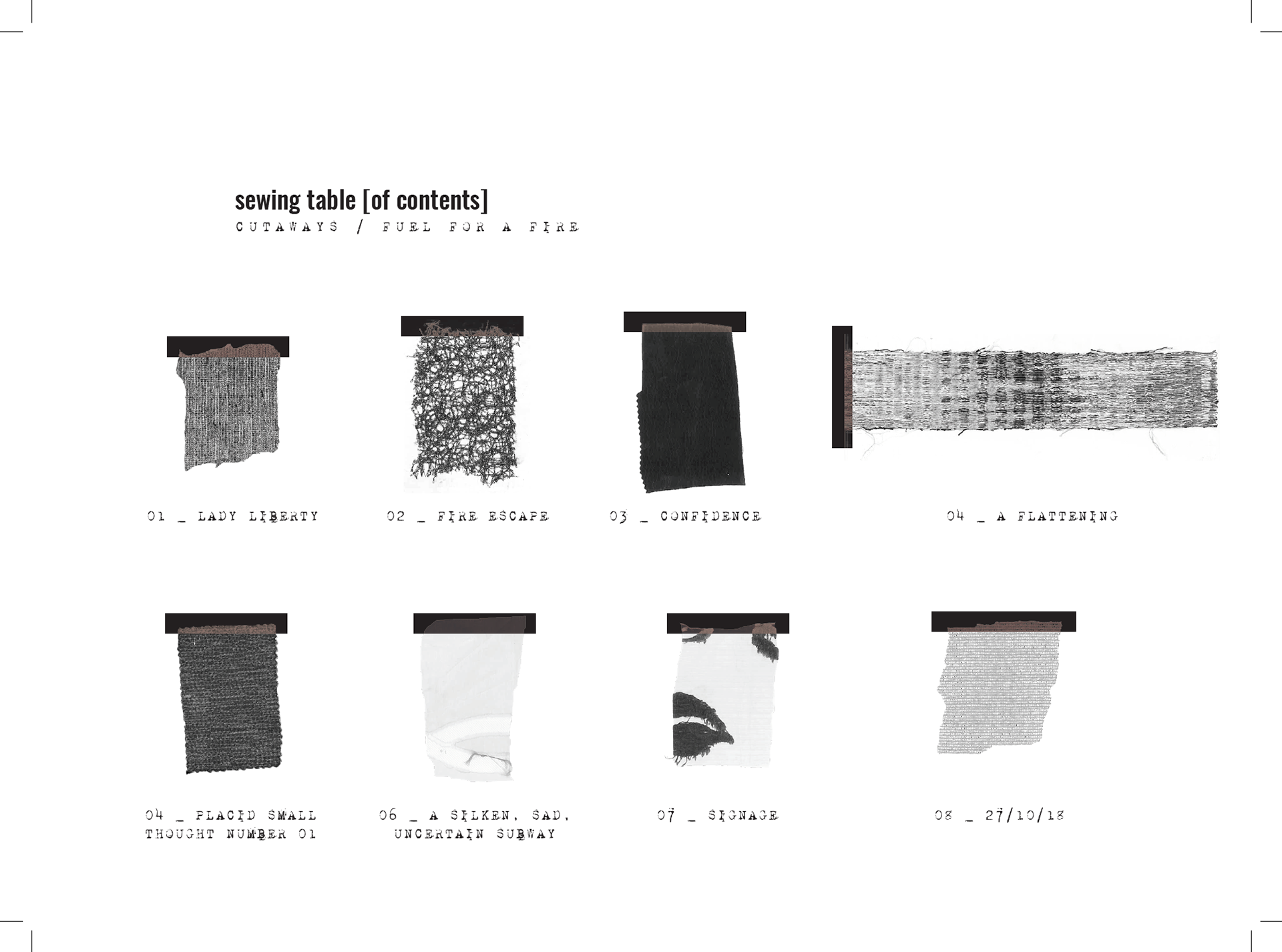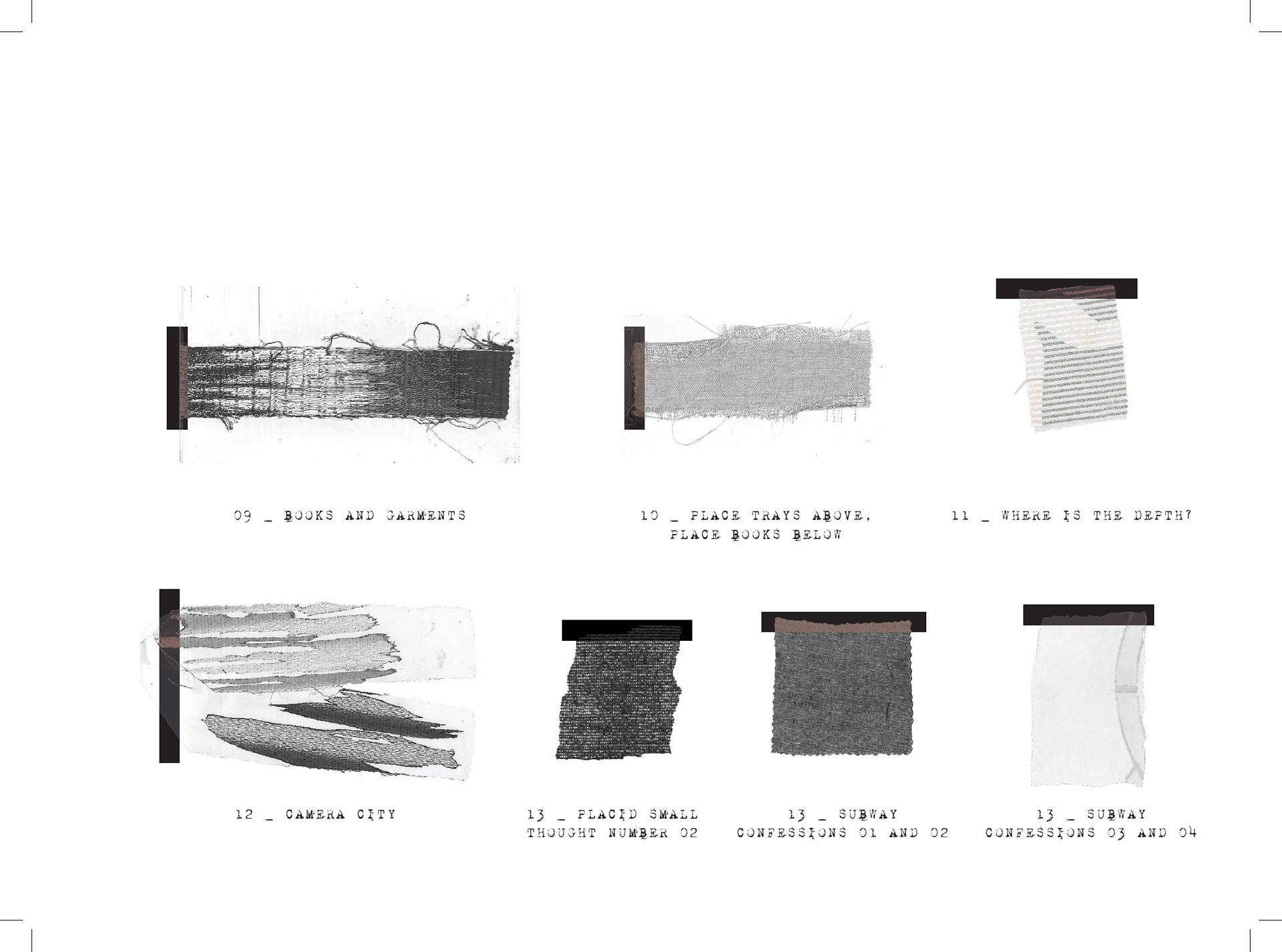 In Manhattan, neither my phone nor my camera worked particularly well. I took to collecting and writing instead. These are some samples and swatches collected. Some of them would inform later work, others remain open to other possibilities.